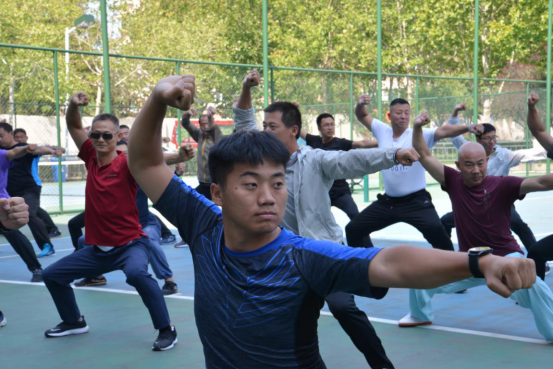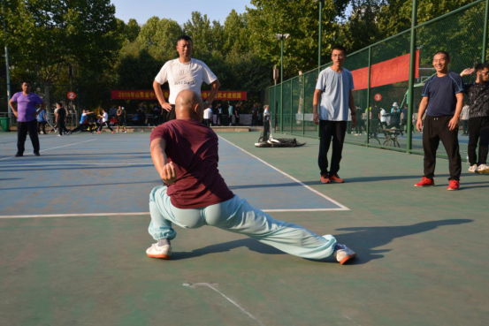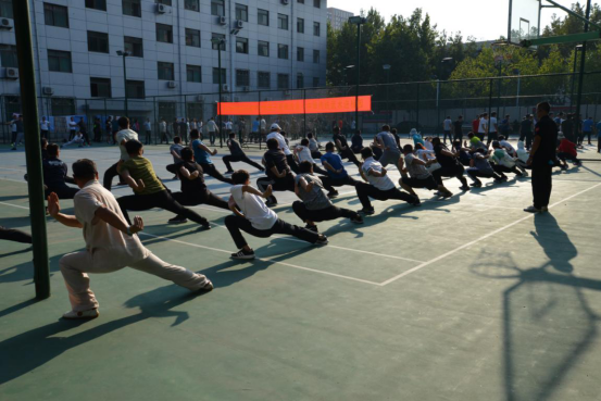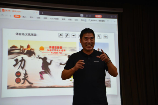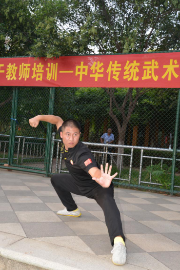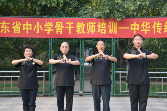 接下来,参训学员们进行了一场实训课,来自嵩山少林寺武术馆的四位顶尖武术教练为学员们进行了一场中华传统武术基本功方面的授课。