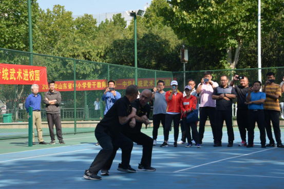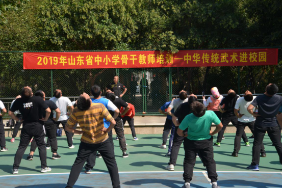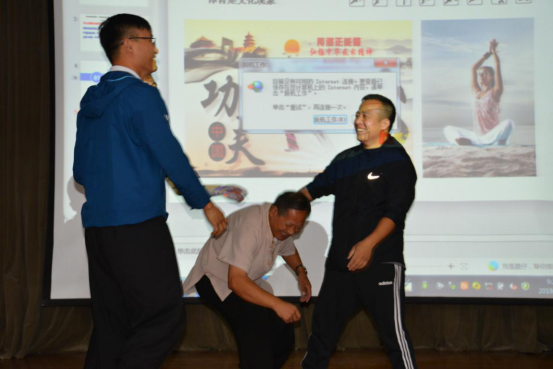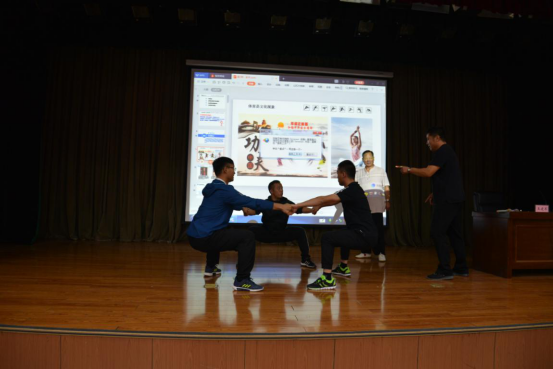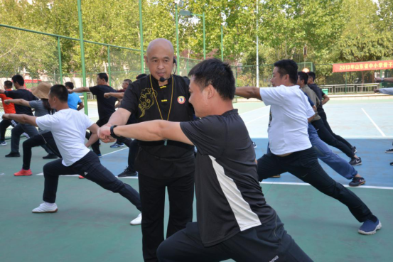 在授课过程中,王主任频频与学员互动,通过现场示范,学员演示,亲身纠正等方法,逐一示范了武术教学过程中如何与体育教学紧密结合,如何用体育的手段实现武术教学,如何用武术的手段实现体育目的。