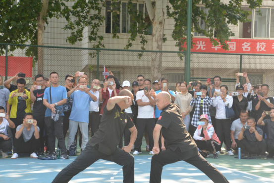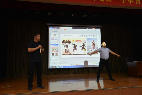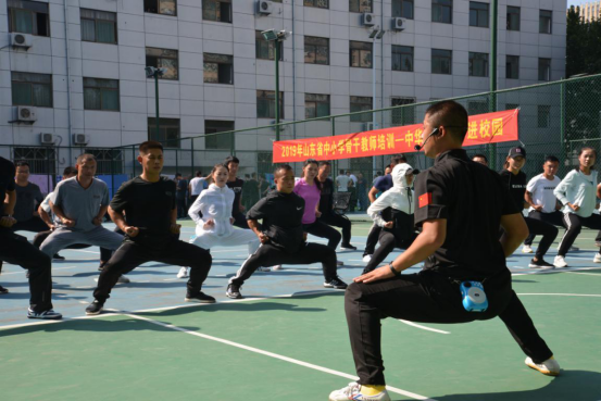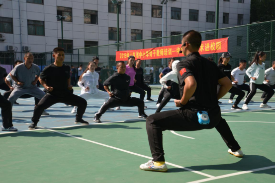 实训课开始前,四位教练为参训老师们带来了中华传统武术中的部分拳术及套路演练,精彩的武术展示让学员们欢呼连连,掌声不断。