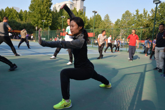 短短一节课的时间,老师们虽然练的大汗淋漓,但却都兴趣十足,劲头猛猛。短短一节课的时间,老师们就对中华传统武术充满了兴趣。