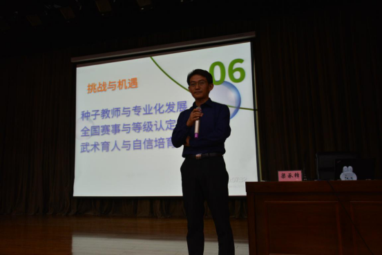 梁教授以《校园武术的发展方向探讨》为题,从各个层面为学员们进行了深度讲解。