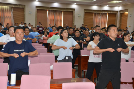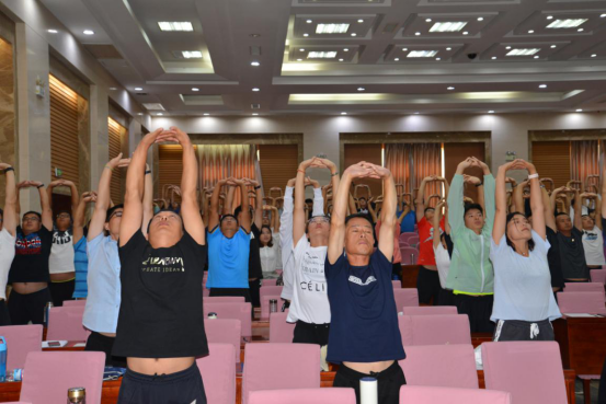 八段锦作为健身功法源于北宋,至今已经有八九百年的历史了。这套运作舒展优美,回环贯彻,连绵若锦,而且锻炼起来并不需要多大的场地,甚至坐在办公室里也可以锻炼,学员们对于学习兴趣十足。