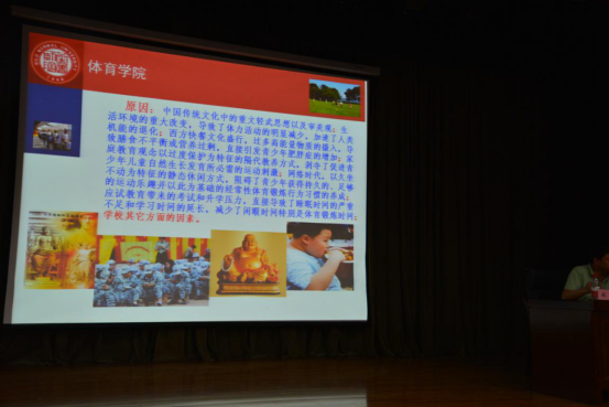 刘教授从武术的起源、学校体育的起源讲起;从中国曾辉煌无比至保受欺凌的历史讲起;从国内国外对体育的认识不同、对待不同讲起;从现阶段全世界青少年体质状况讲起;从古今中外不同时期的历史名人和国家首脑对体育的重视讲起;用饱含深情充满激情的讲解向大家阐述了一个道理:体育不仅仅是炼体,更要育魂,用正确的体育方式育人,使我们的学生不仅仅拥有强健的体魄,更拥有健全的人格,这是我们所有体育人,武术人应当做的事情。
