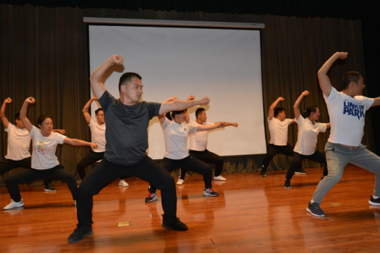 培训的实训课教练在台下就座,学员们按分组以个人和小集体的方式进行培训成果展示,教练就学员们的展示进行了现场的点评及指导。其中,还穿插着部分学员的个人展示,整个环节其乐融融。