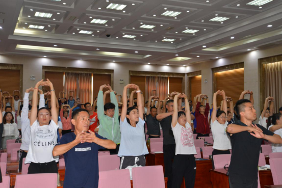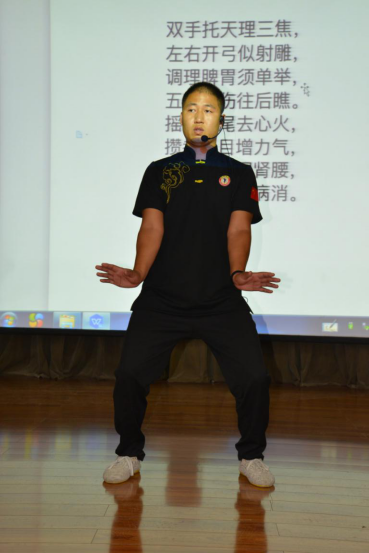 考虑到参训学员绝大多数都是奋战在第一线的体育老师,平时得不到很好的休息,而且因为体育教学的特殊性,有些老师还有一些运动损伤。根据这个特点,选择了为老师们安排这样一堂培训课,少林八段锦的锻炼,可以做到内外兼修,能够充分调动和利用人自身具有的抗病能力和康复能力。